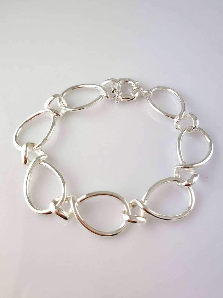 Hand finished Sterling silver large loop bracelet – 7x loop twist links / 21.5cm