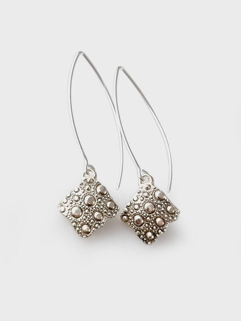 ER ss387 Sterling silver ‘ KINA – diamond shape ‘ earrings (long 5.5cm)