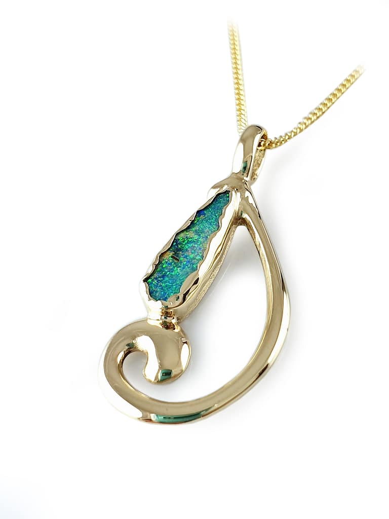 PD9YKORU One of a kind 9ct Gold “Boulder Opal” koru pendant excludes chain