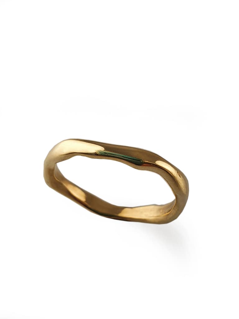 Hand finished in 9ct YELLOW gold this is a lovely alternative to the traditional wedding band . Or just as a ring to add into your existing collection . Lovely organic shape .
