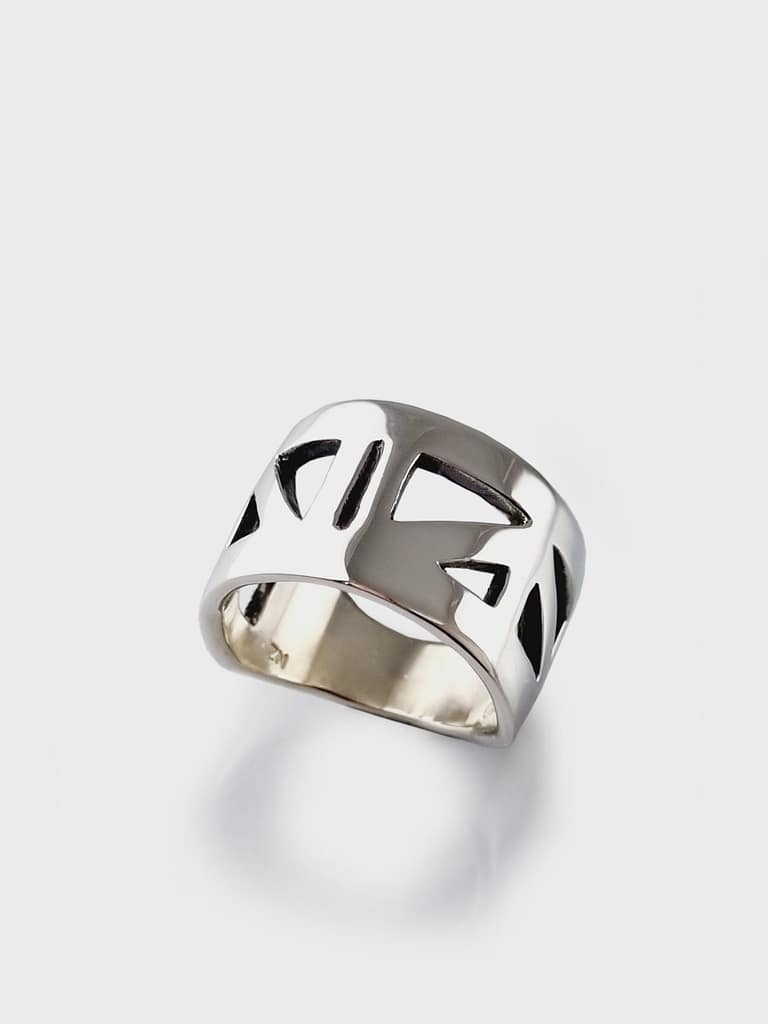 Hand finished Sterling silver 14mm WIDE cut out band.