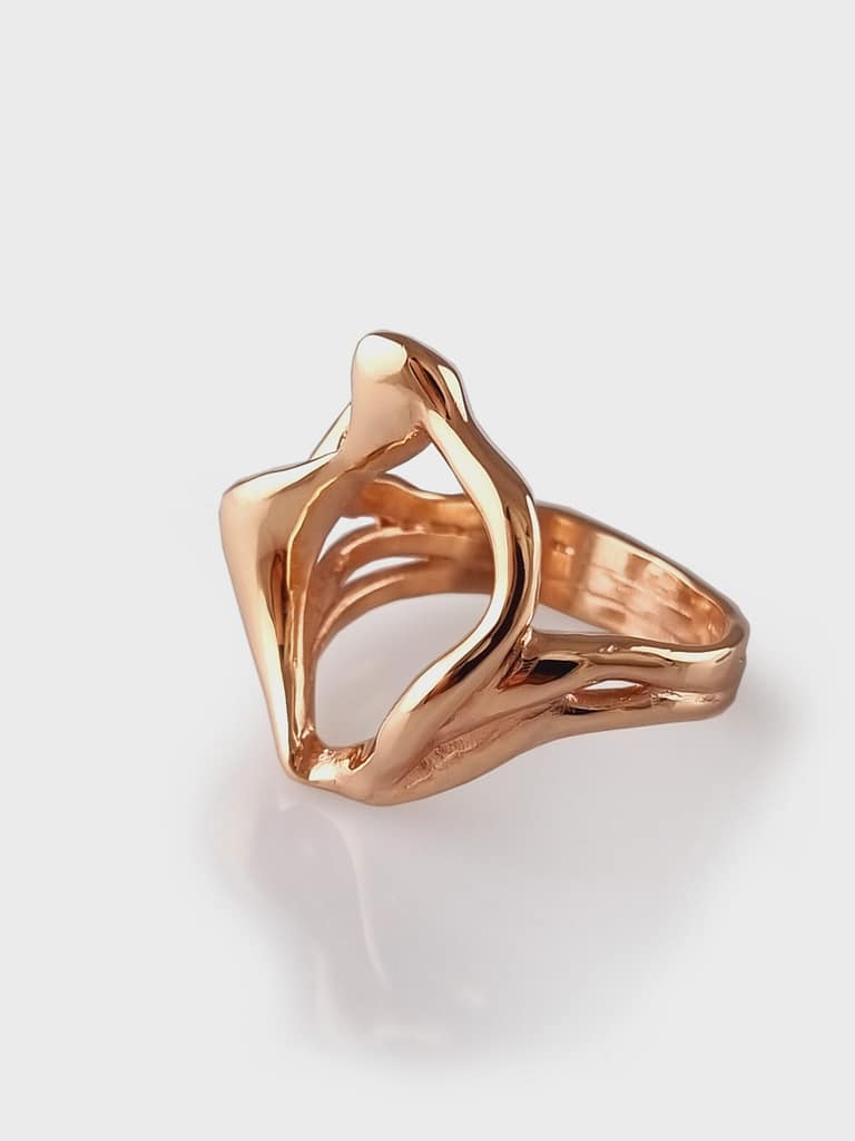 - Hand finished Rose gold stylised ‘ Totorere Shell link ‘ ring . Moulded off of a shell found on local Mt.Maunganui beach .