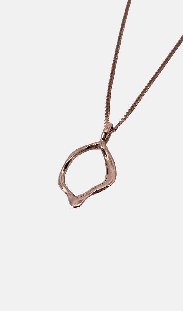 Stylised and hand finished in 9ct ROSE Gold, mini Totorere- shell link pendant.